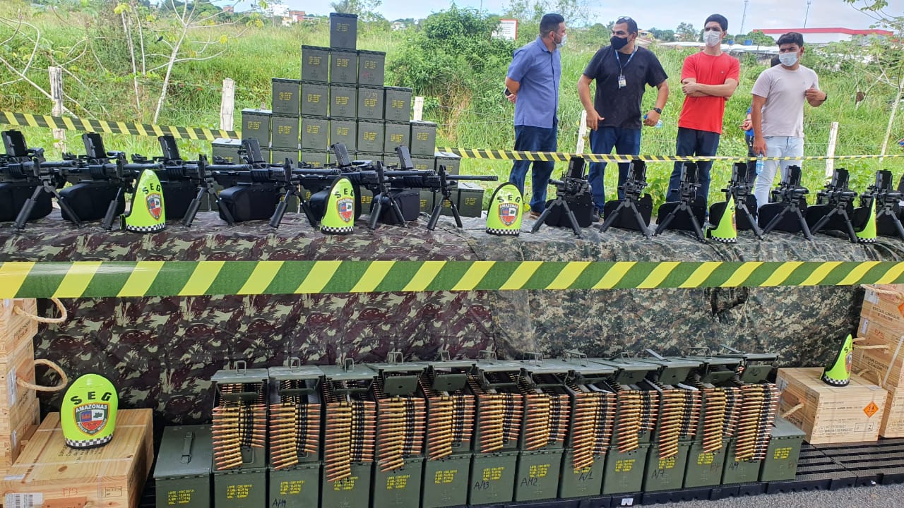 Armas - Os armamentos serão repassados para reforçar o trabalho dos agentes, durante as operações nas fronteiras e divisas do estado. Os mesmos foram adquiridos por meio de parceria entre o Governo do Amazonas e o Ministério da Justiça e Segurança Pública (MJSP), do Governo Federal. São 14 metralhadoras 762, além de 77 mil munições de diversos calibres.