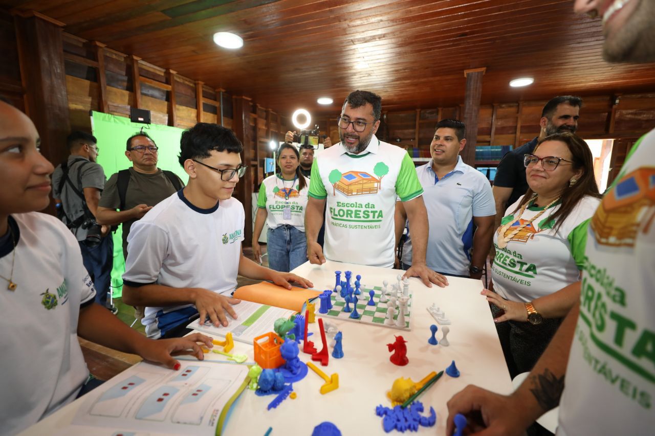 “Essa é uma escola que foi pensada para preparar as crianças para enfrentarem a nova realidade das mudanças climáticas, entendendo a necessidade que a gente tem de preservar a floresta, mas também de preservar, sobretudo, o ser humano, fazendo com que ele tenha o conhecimento, mas que tenha também a oportunidade da geração de emprego e renda”, disse o governador.