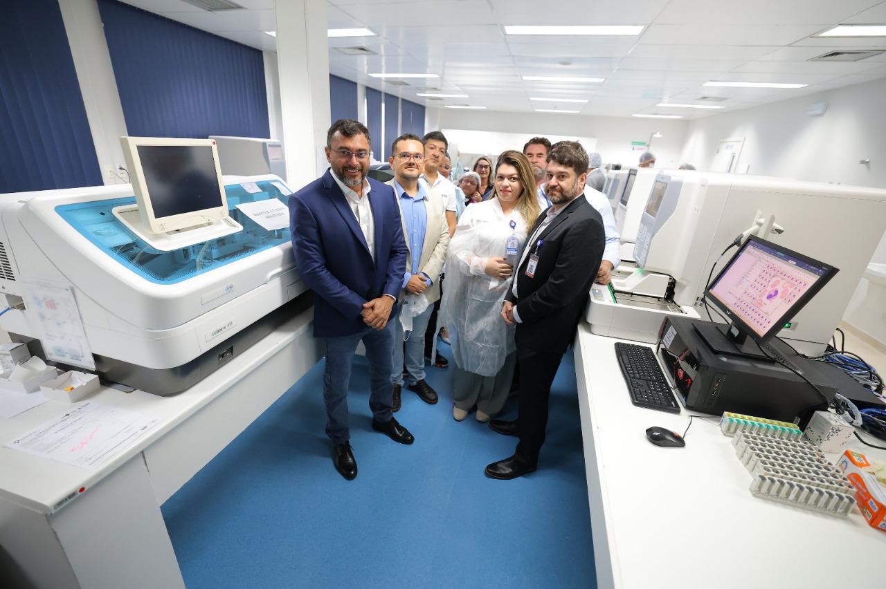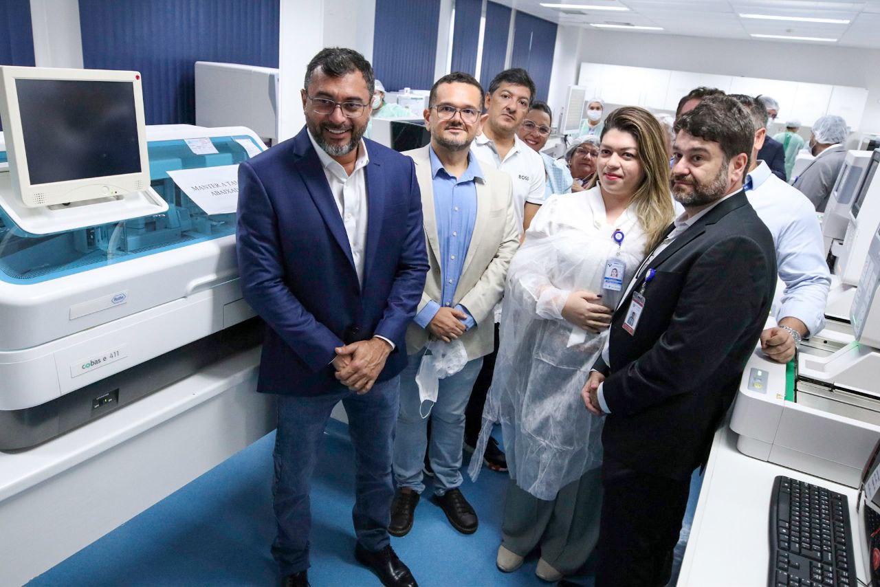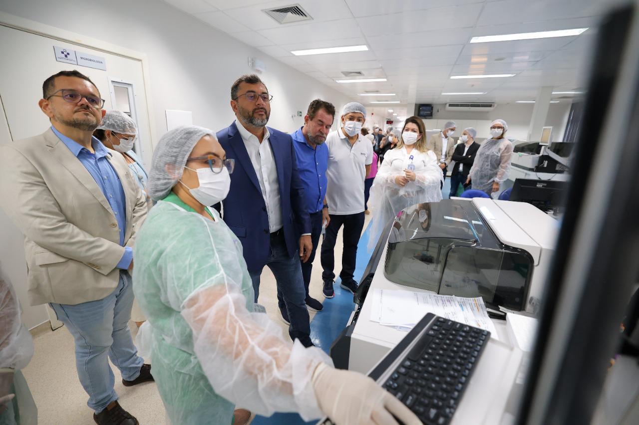 O governador Wilson Lima entregou, na quarta-feira, 29/01, dez novos equipamentos que vão modernizar e ampliar em 23% a capacidade de produção do laboratório do Hospital e Pronto-Socorro Delphina Aziz. Na ocasião, o governador também apresentou um balanço dos atendimentos realizados na unidade, que demonstram os avanços em diversos indicadores, como oferta de leitos e atendimentos desde 2019.
