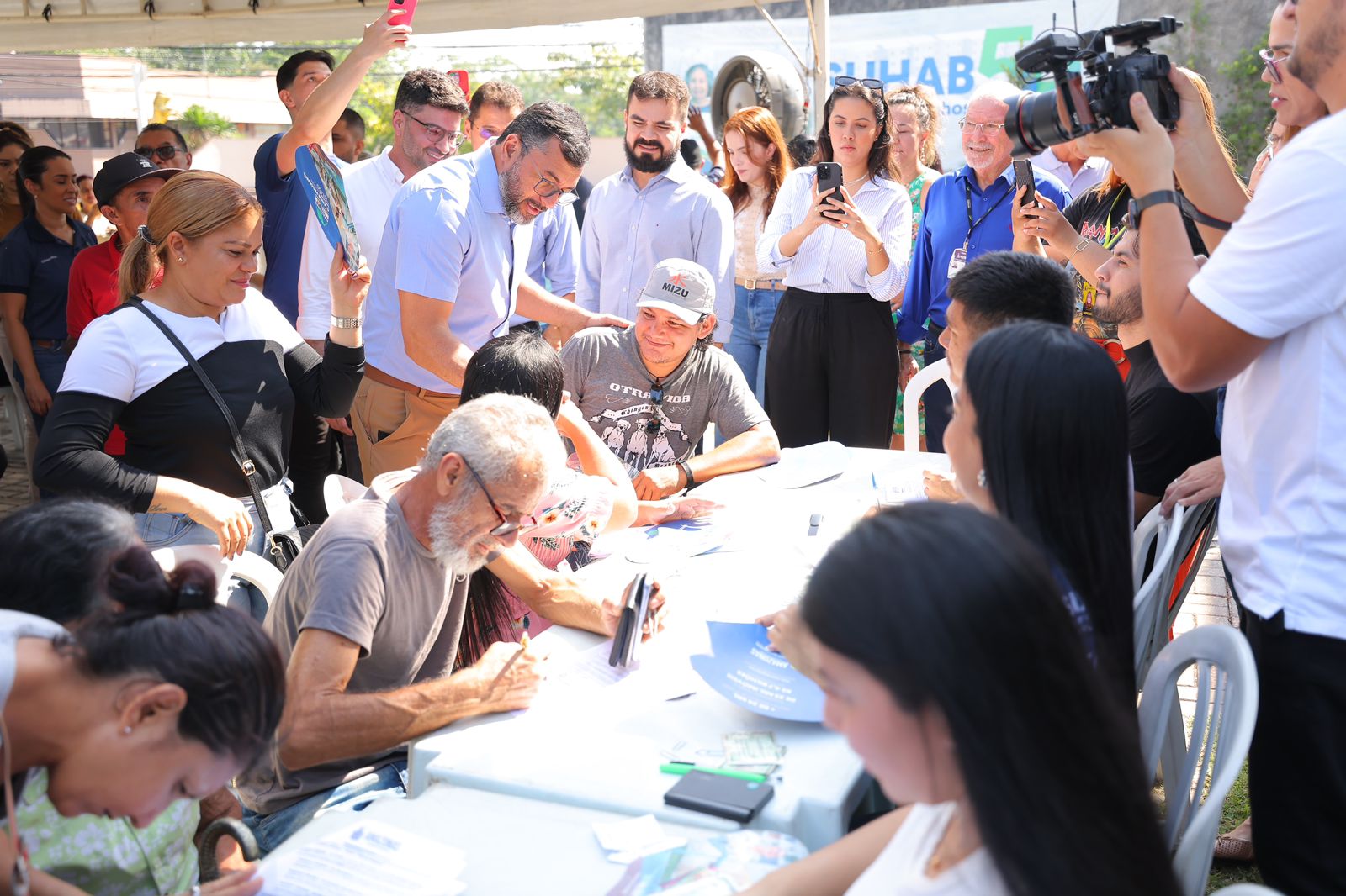 O governador acompanhou os atendimentos realizados na sede da Superintendência Estadual de Habitação do Amazonas (Suhab), bairro Aleixo, zona centro-sul de Manaus, local de atendimento das famílias nesta etapa.