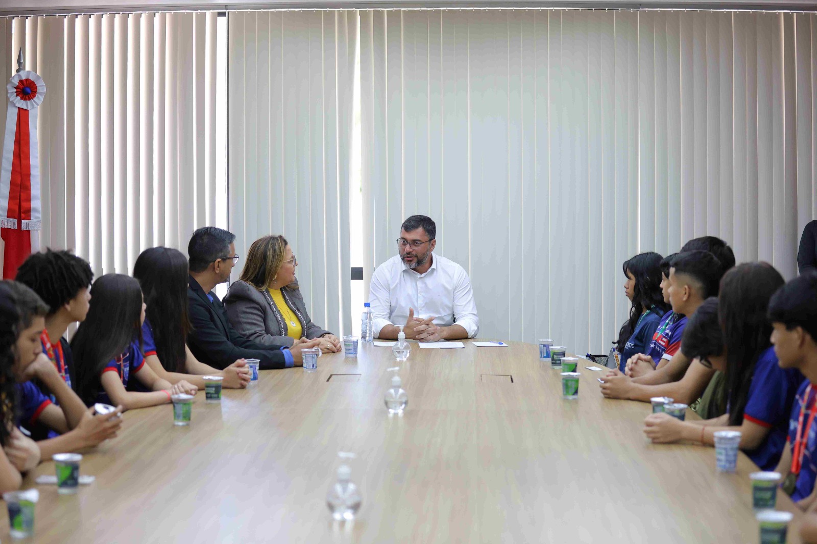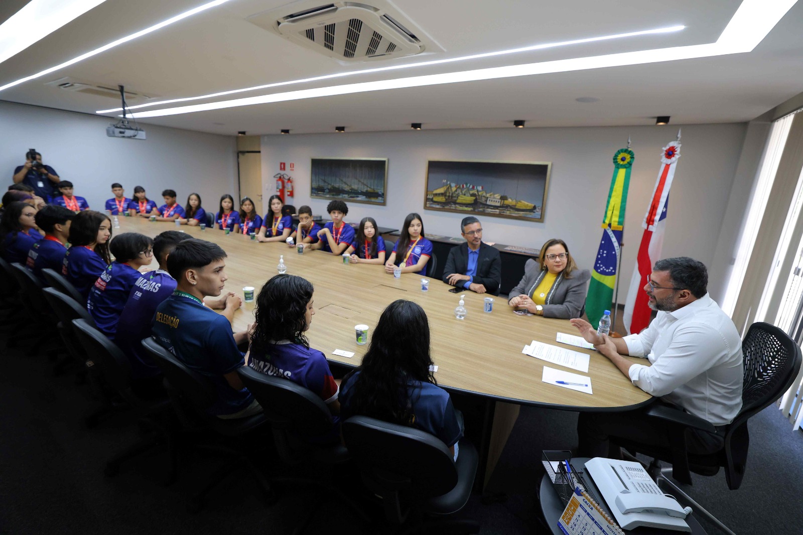 O governador Wilson Lima também recebeu sete alunos da rede estadual que vão representar o Amazonas no mundial escolar Gymnasiade 2024. O grupo de atletas competirá na modalidade de wrestling em Bahrein, no Oriente Médio, de 23 a 31 de outubro.Os estudantes foram selecionados em uma classificatória promovida pela Confederação Brasileira de Desporto Escolar (CBDE) e viajam no próximo domingo, 20/10, para o país.