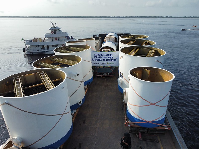 O governador Wilson Lima acompanhou, nesta sexta-feira, 19/09, o envio da Estação de Tratamento de Água (ETA) que vai transformar o sistema de abastecimento em São Gabriel da Cachoeira, no interior do Amazonas. A estrutura segue de Manaus, por via fluvial, até o município (distante 852 quilômetros da capital), onde beneficiará mais de 35 mil pessoas.