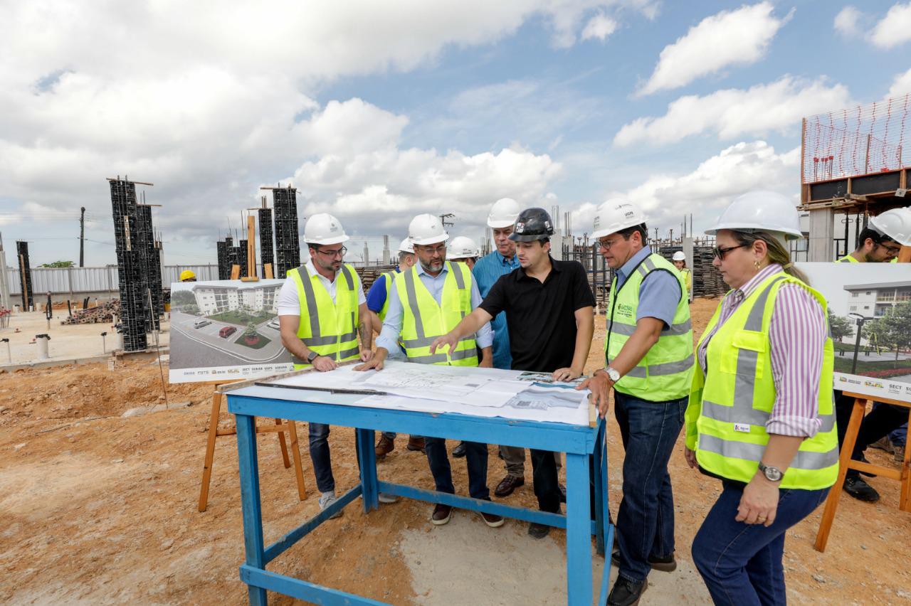 O governador Wilson Lima vistoriou, nesta terça-feira, 03/06, as obras do Residencial Novo Aleixo, na Zona Norte de Manaus. O empreendimento, que integra o programa habitacional Amazonas Meu Lar, do Governo do Amazonas, em parceria com o Minha Casa, Minha Vida, do Governo Federal, segue com ritmo acelerado e já alcançou 21% de execução.