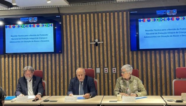 Em um contexto marcado pelo agravamento da crise climática no Brasil, como o aumento da frequência e intensidade de desastres como enchentes, secas prolongadas e deslizamentos, o governo federal realizou, na quinta-feira, 31, reunião técnica sobre a revisão do Protocolo Nacional para a Proteção Integral de Crianças e Adolescentes em Situação de Riscos e Desastres. A atividade foi coordenada pela Secretaria Nacional dos Direitos da Criança e do Adolescente do Ministério dos Direitos Humanos e da Cidadania (SNDCA/MDHC), em parceria com o Fundo das Nações Unidas para a Infância (Unicef) e com a Secretaria Nacional de Proteção e Defesa Civil do Ministério da Integração e do Desenvolvimento Regional (SEDEC/MIDR), na sede do Unicef em Brasília.
