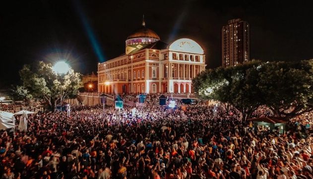 Palco do Réveillon do Largo já está sendo montado ao lado do Teatro Amazonas