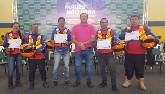 O Governo do Amazonas, por meio do Departamento Estadual de Trânsito (Detran-AM) contemplou, nesta segunda-feira (23/05), 150 mototaxistas de Maués (a 276 quilômetros de Manaus) com kits de segurança, compostos de um capacete e um colete, cada. Foram entregues também 37 certificados do curso de capacitação e de atualização realizado pelo departamento de trânsito. A ação teve a participação do governador Wilson Lima, que anuncia investimentos e acompanha ações do Estado no município.