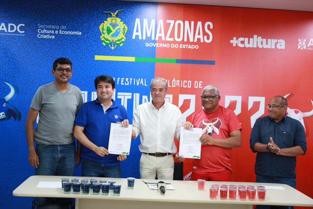 Cada agremiação terá, ao todo, 35 mil copos personalizados, com as cores de cada boi. O termo de doação foi assinado pelos presidentes dos bois; pelo diretor-presidente da Cosama, Armando do Valle; e pelo secretário de Cultura e Economia Criativa, Marcos Apolo Muniz.