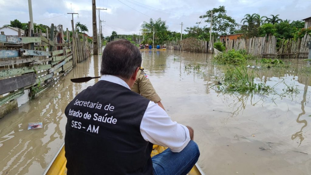 Acompanhando o governador Wilson Lima, o secretário de estado de Saúde, Dr Anoar Samad, participou, nesta segunda-feira (04/04), das ações humanitárias de ajuda à população e determinou urgência para o envio dos insumos necessários após o temporal.