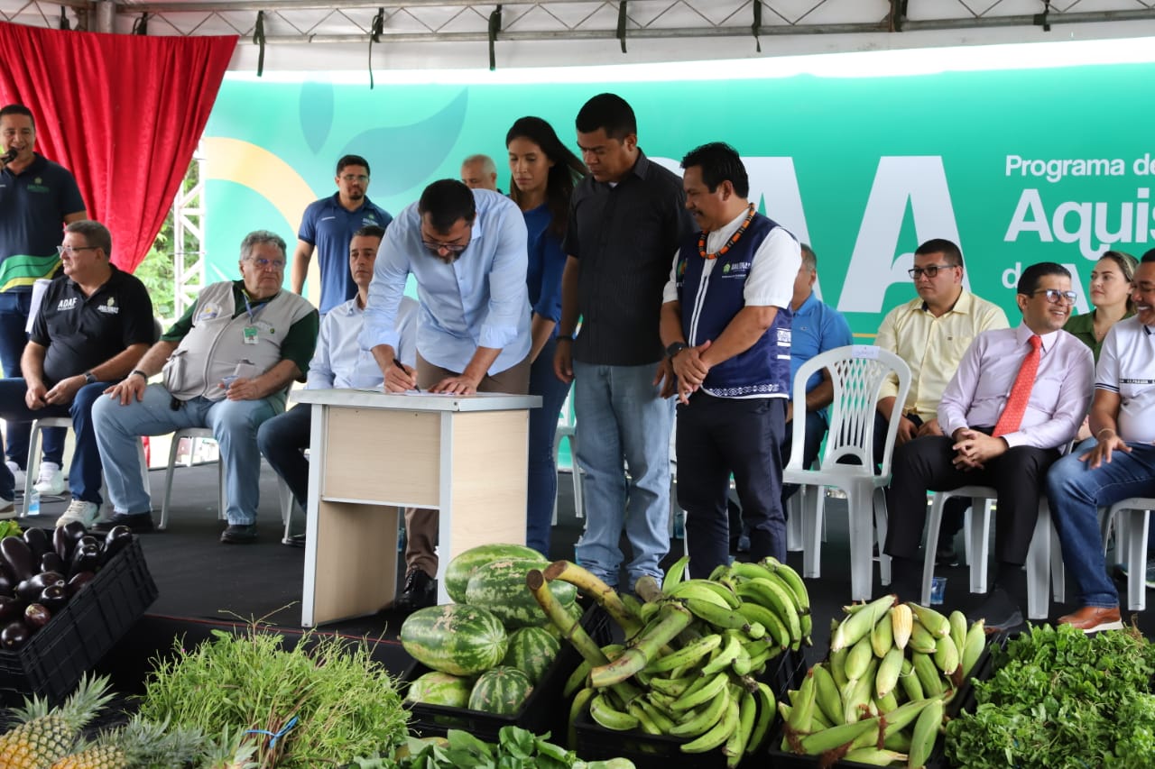 Na ocasião, o governador Wilson Lima entregou, aproximadamente, 80 toneladas de itens alimentares adquiridos de 68 agricultores do estado por meio do Programa de Aquisição de Alimentos (PAA).