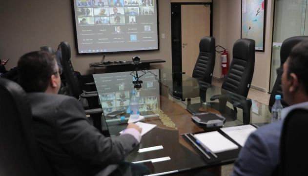 O governador Wilson Lima e o secretário de Estado da Fazenda, Alex Del Giglio, participaram do encontro de forma virtual.