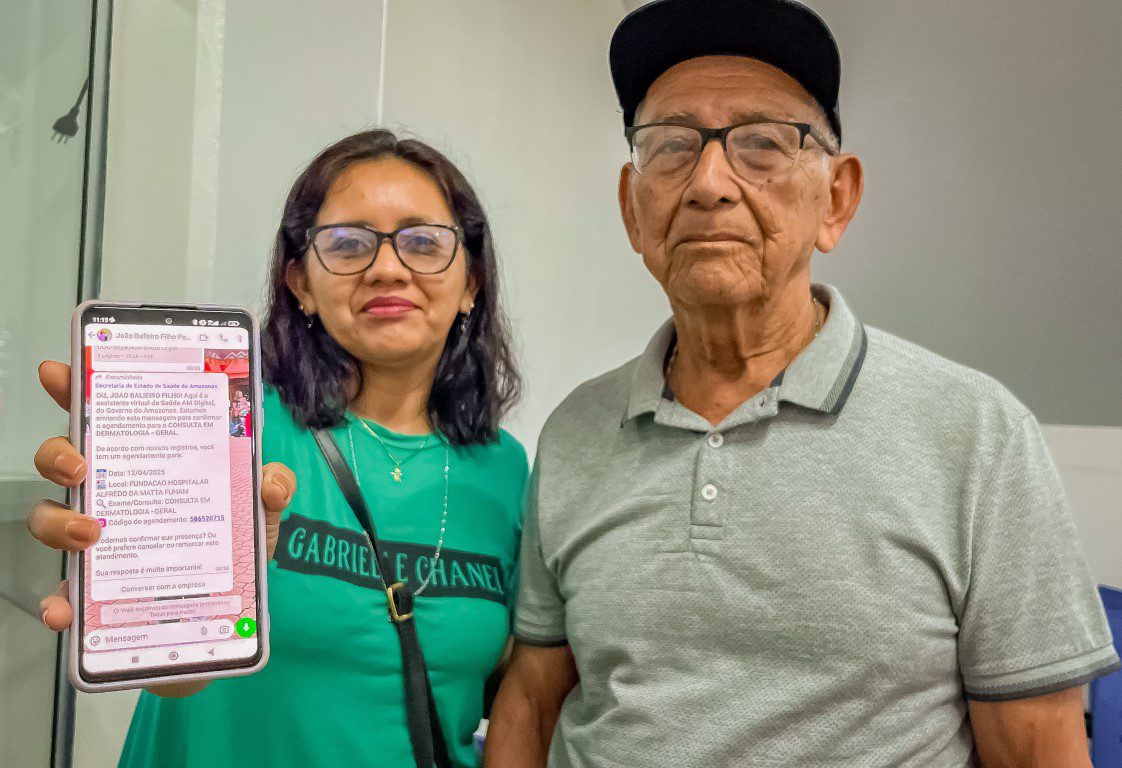O paciente João Balieiro, de 82 anos, foi um dos que estavam na fila da regulação para passar pelo atendimento com dermatologista neste sábado. A filha dele, Alcilene Balieiro, 46, contou que o agendamento foi feito através da Assistente Virtual. “Através da mensagem da secretaria, soubemos que ele deveria comparecer aqui na Fundação. Agora, ele já está encaminhado para fazer uma biópsia e vai fazer o acompanhamento. A gente tem um certo medo quando recebe essas mensagens, mas confiamos e deu certo. Ele fez a consulta e já pegamos a medicação que foi passada pela médica aqui na unidade”, relatou a filha do paciente.