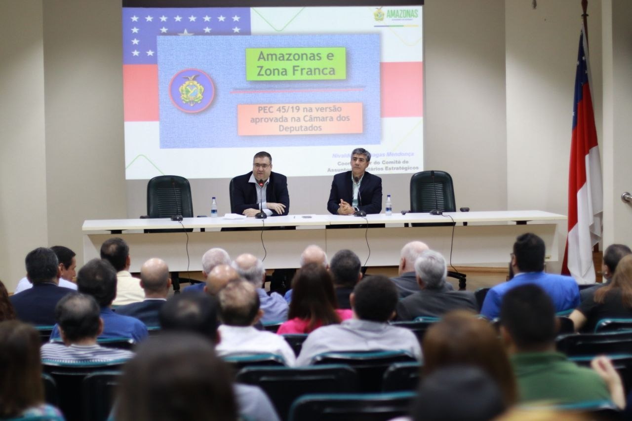 Com recente aprovação da Proposta de Emenda Constitucional (PEC) 45/2019 (Reforma Tributária) na Câmara dos Deputados, e envio do texto ao Senado, com diretrizes de manutenção das vantagens competitivas da Zona Franca de Manaus, o Governo do Amazonas, por meio do Comitê de Assuntos Tributários Estratégicos (Cate), reuniu representantes dos setores produtivos, órgãos governamentais e estudiosos do assunto na sede da Secretaria de Estado da Fazenda (Sefaz-AM), nesta terça-feira (18/07), para analisar e discutir o resultado do trabalho de proposição.
