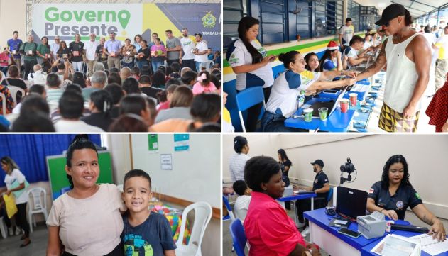 O clima de Natal tomou conta da 19ª edição do Governo Presente, realizada no sábado, 21/12, na Escola Estadual Ernesto Pinho Filho, no bairro Cidade Nova, zona norte de Manaus. A última ação do ano bateu recorde de público, com mais de 11 mil atendimentos em diversos serviços, como saúde, cidadania, lazer e acesso ao crédito. Também houve distribuição de 5 mil panetones, brindes, brinquedos para as crianças, além da apresentação de um espetáculo natalino.