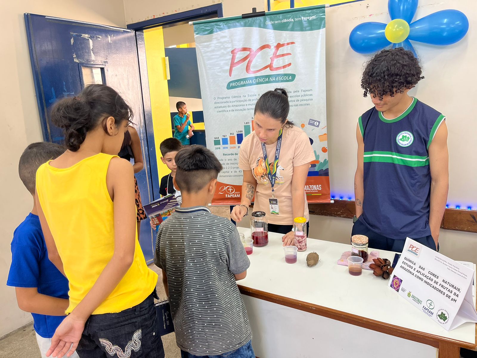 Um dos projetos que foram expostos na ação foi a “Química das cores naturais, estudo e aplicação de frutas da Amazônia como indicadores de pH” desenvolvido no âmbito do Programa Ciência na Escola (PCE), coordenado pela professora da Secretaria de Estado e Desporto e doutora em Química, Persiely Pires Rosa, que levou amostras dos extratos indicadores de ácidos-bases (substâncias que em solução aquosa sofrem ionização) produzidos a partir do cará, pitaya e urucum.