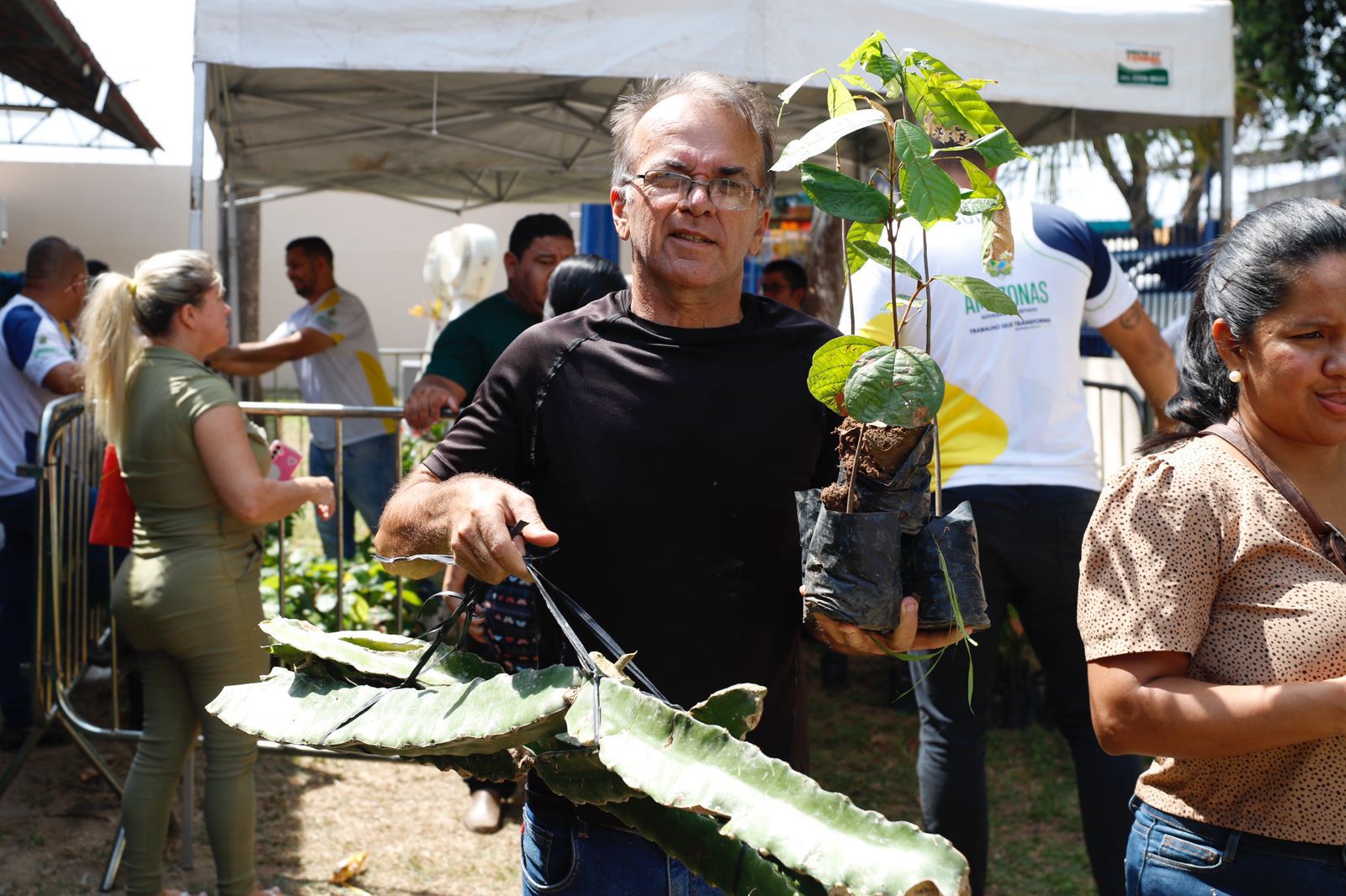 "Hoje nós estamos aqui com 600 mudas frutíferas. Estamos fazendo essa entrega aqui para incentivar a agricultura urbana e periurbana aqui na cidade de Manaus.", falou Eirie.