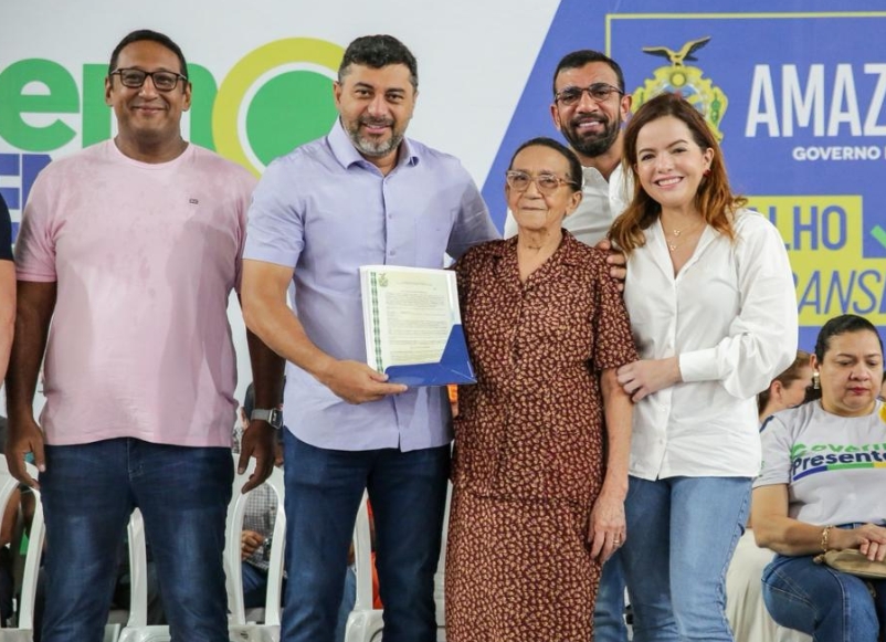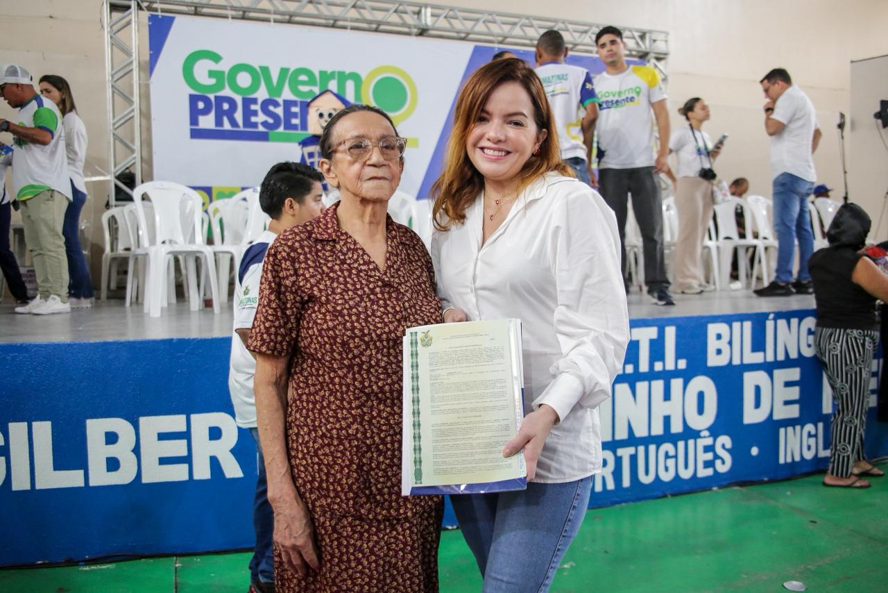 Após mais de quatro décadas de espera, a aposentada Enóquia da Silvia Fernandes, de 81 anos, recebeu das mãos do governador Wilson Lima o título definitivo do seu imóvel na manhã deste sábado, 20/12. A entrega da documentação aconteceu durante a última edição do Governo Presente - Especial de Natal, realizada no E.E.T.I. Bilíngue Gilberto Mestrinho, bairro Educandos, zona sul de Manaus e foi marcada por forte emoção.