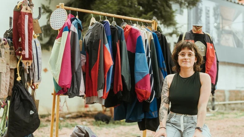 Para Marina Anderle Giongo a moda sempre se pautou no “chão de fábrica”. Hoje, ela lidera a CÓS – Costura Consciente, um negócio social em Porto Alegre, no Rio Grande do Sul, que transforma materiais descartados, como o nylon de guarda-chuvas, em designs autorais. Desde 2019, a iniciativa já evitou que cerca de mil quilos de resíduos fossem parar no lixo.