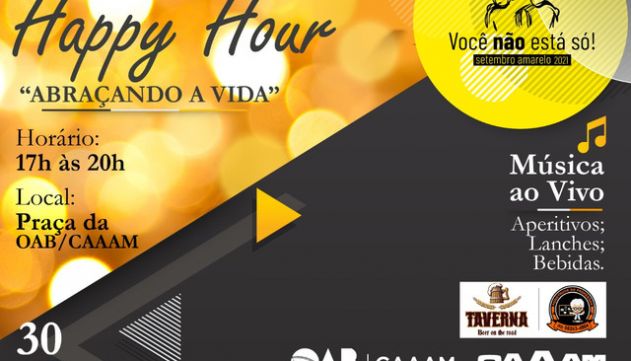 Concluindo a extensa programação a CAAAM realizará na próxima quinta-feira, 30/09, o Happy Hour: Abraçando a vida que reunirá a advocacia na praça da OAB/AM para um momento de entretenimento e alegria. O evento iniciará às 17h com previsão de término para às 20h.