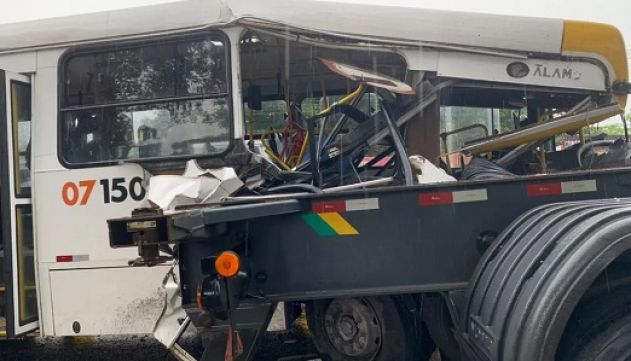 Duas pessoas seguem internadas após ônibus colidir contra carreta estacionada em Manaus