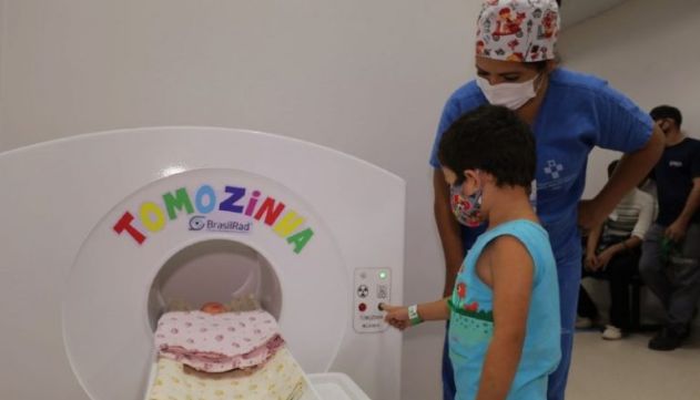“A gente pensa ‘o que mais pode trazer medo? É o desconhecido. Então vamos treinar e mostrar para as crianças o que elas vão passar no exame de tomografia e ressonância, para quando chegarem ao exame real não terem tanta dúvida, medo”, afirma o diretor.