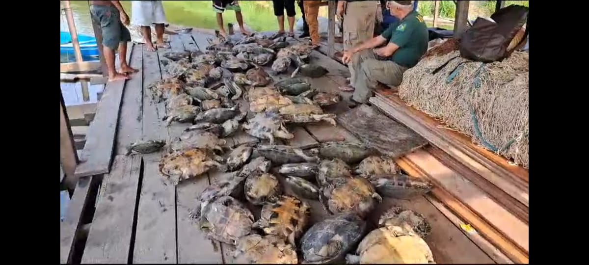 Durante a operação Banzeiro, no município de Beruri, o ibama realizou a apreensão 100 quelônios.