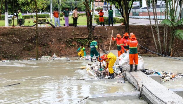 Prefeitura de Manaus realiza operação de limpeza nas ecobarreiras após forte chuva