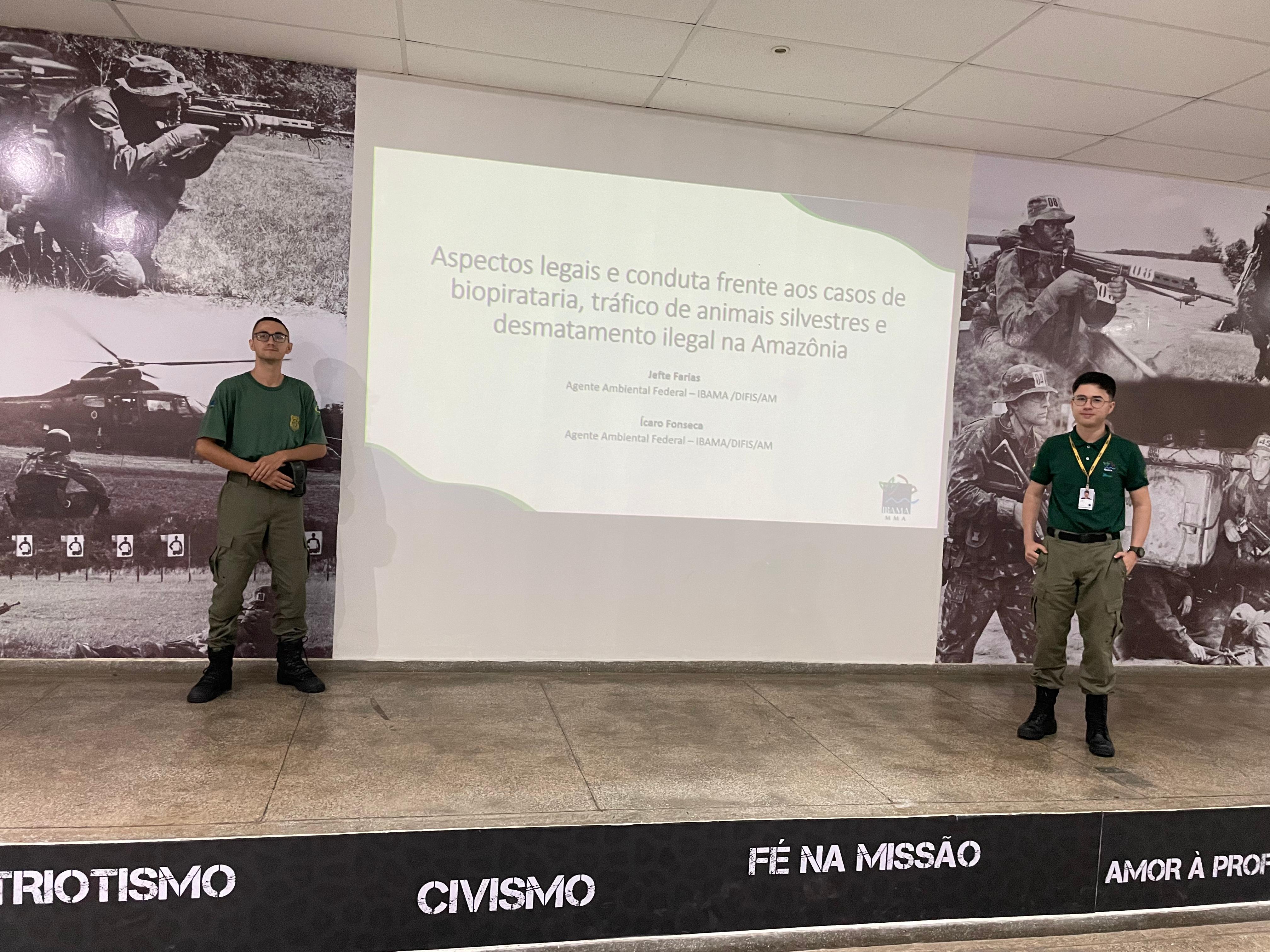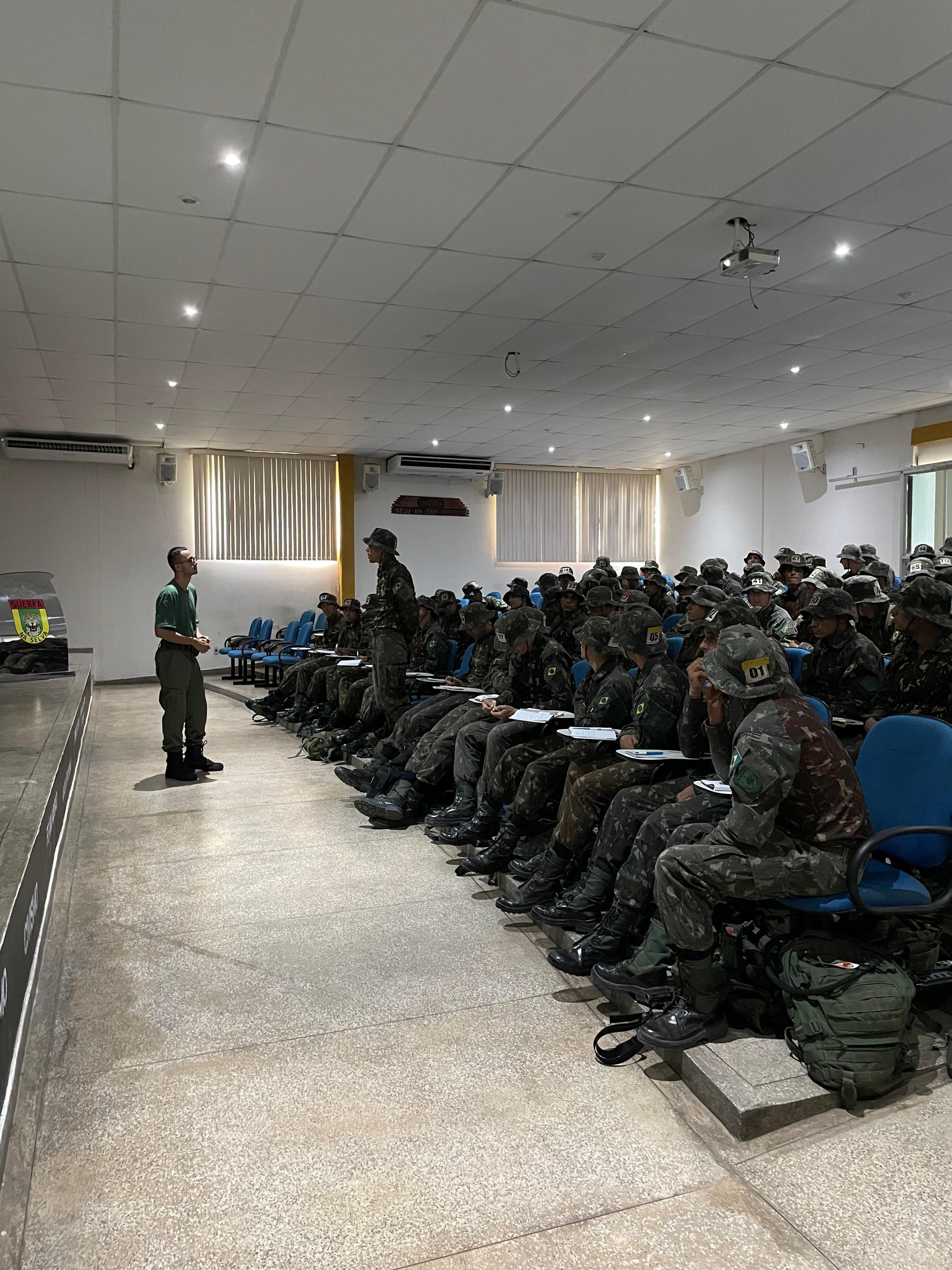 Agentes da Divisão de Fiscalização do Ibama no Amazonas (Difis/AM) ministraram hoje, 10/10, uma palestra no Centro de Instrução de Guerra na Selva (CIGS) para sargentos e oficiais do Exército, alunos do Curso de Operações na Selva, na disciplina “Operações de Cooperação com Agências”.