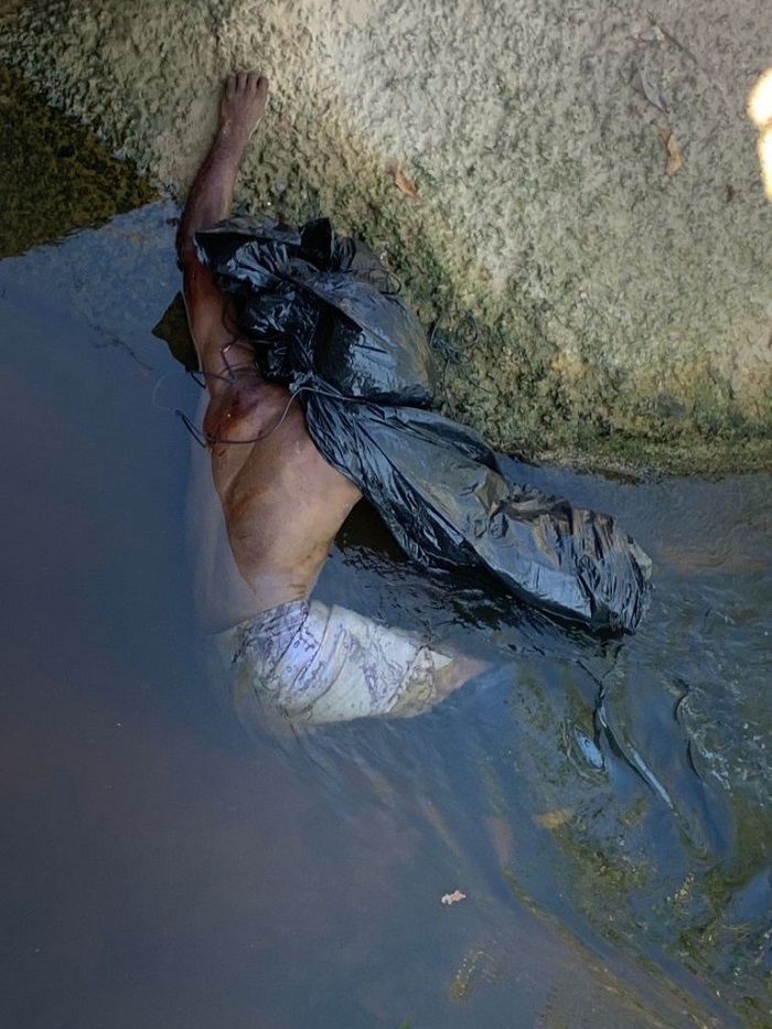 IMAGEM FORTE! Corpo de homem com saco plástico preto enrolado na cabeça e várias facadas é encontrado no final da manhã na cachoeira alta do bairro do Tarumã, Zona Oeste de Manaus
