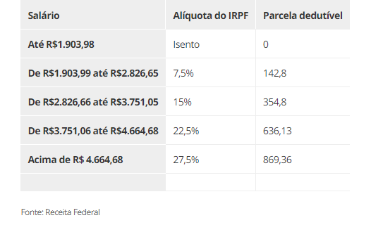Tabela do Imposto de Renda 2022