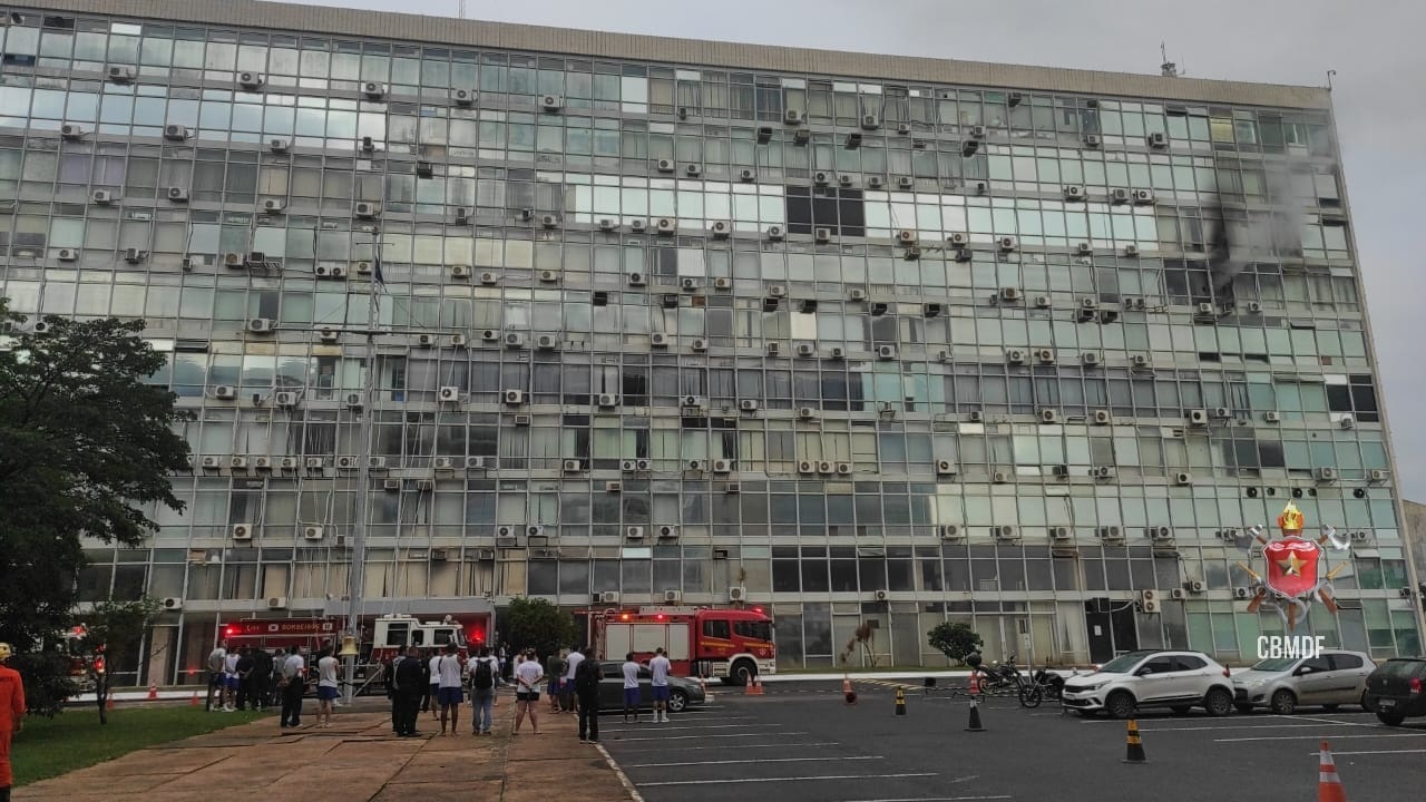 Um incêndio atingiu o prédio do Ministério da Defesa em Brasília na manhã deste sábado (18.mar.2023). Uma sala do 6º andar foi atingida pelas chamas pouco por volta das 6h.