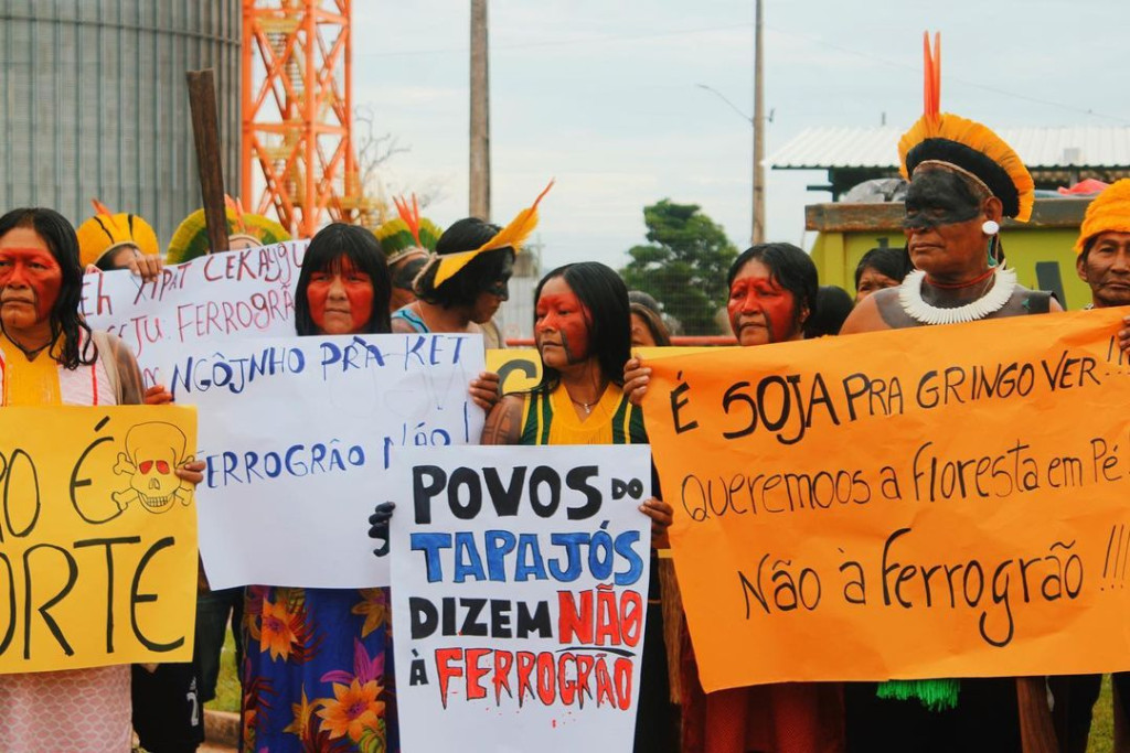 Povos indígenas das etnias Munduruku, Kayapó, Panará, Apiaká e do Baixo Tapajós se reuniram nesta segunda-feira, 4, em protesto contra a construção da ferrovia Ferrogrão, uma via do agronegócio que pode devastar 50 mil km² da floresta amazônica localizada às margens do Rio Tapajós.