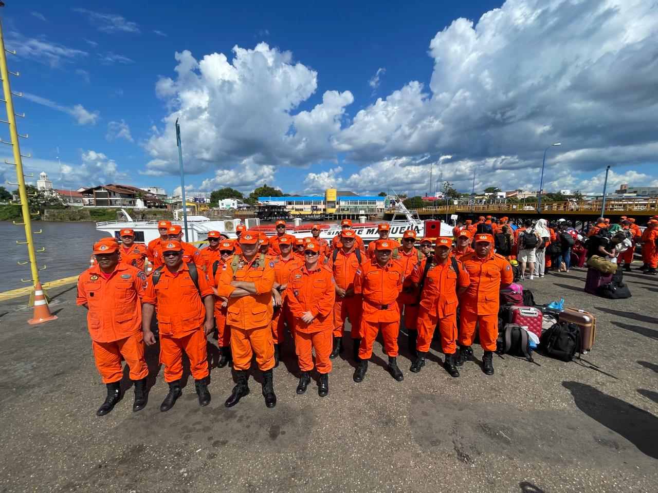 Na segunda-feira, 24/06, o Corpo de Bombeiros do Amazonas (CBMAM) desembarcou suas equipes compostas por brigadistas, mergulhadores, oficiais médicos, que irão reforçar as ações de fiscalização, resgate e salvamento na Ilha Tupinambarana. Ao todo, o CBMAM enviou 120 servidores, que atuarão em toda a cidade.