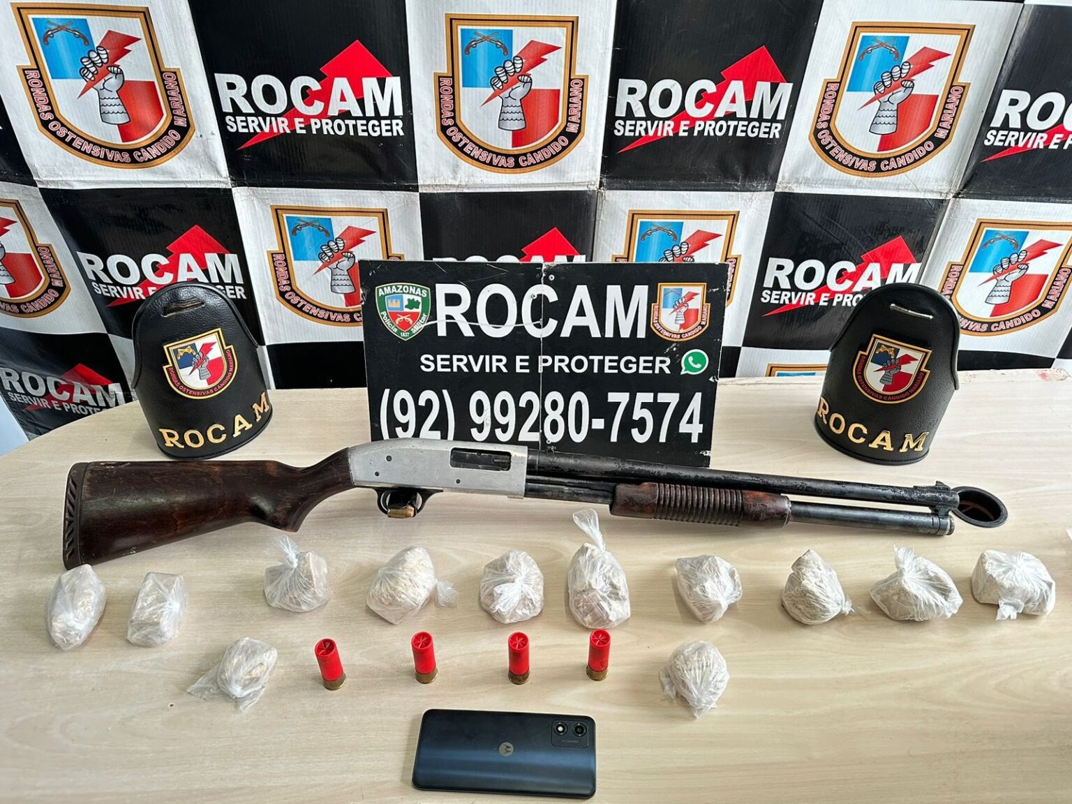 Em uma incursão estratégica batizada de Operação Protetor das Fronteiras/Fronteira Mais Segura, conduzida pela Secretaria de Estado de Segurança Pública (SSP-AM), os bravos policiais da Rondas Ostensivas Cândido Mariano (Rocam) desferiram um golpe certeiro contra o crime, confiscando drogas ilícitas, uma arma de fogo e munições em uma ação matinal eletrizante no sábado, 04/05, na cidade de Rio Preto da Eva, distante apenas 57 quilômetros de Manaus.