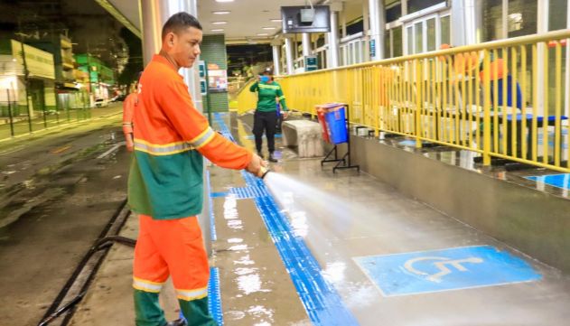 Prefeitura intensifica higienização dos terminais de ônibus em Manaus