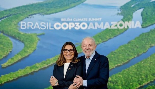 O presidente Luiz Inácio Lula da Silva (PT) ofereceu um almoço para os países que apoiam o TFFF (sigla em inglês para Fundo de Florestas Tropicais para Sempre), durante a Cúpula de Líderes que antecede a COP30 (Conferência das Nações Unidas sobre Mudança do Clima), em Belém (PA). A primeira-dama, Janja Lula da Silva, estava sentada ao lado do petista e o ajudou com as folhas durante o discurso.