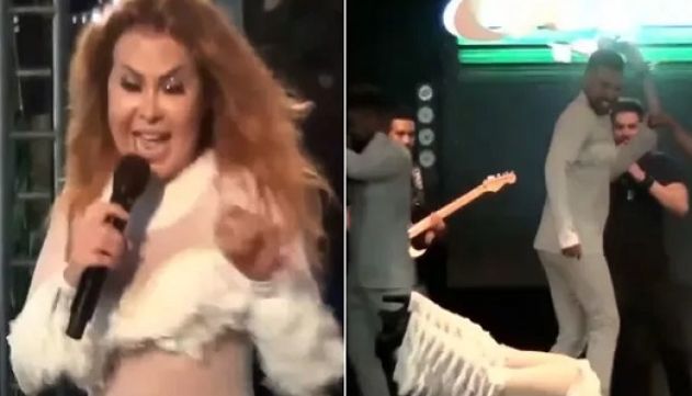 Cantora estava se apresentando em Medeiros Neto quando sofreu o pequeno acidente, mas na sequência se levantou e mostrou que estava bem
