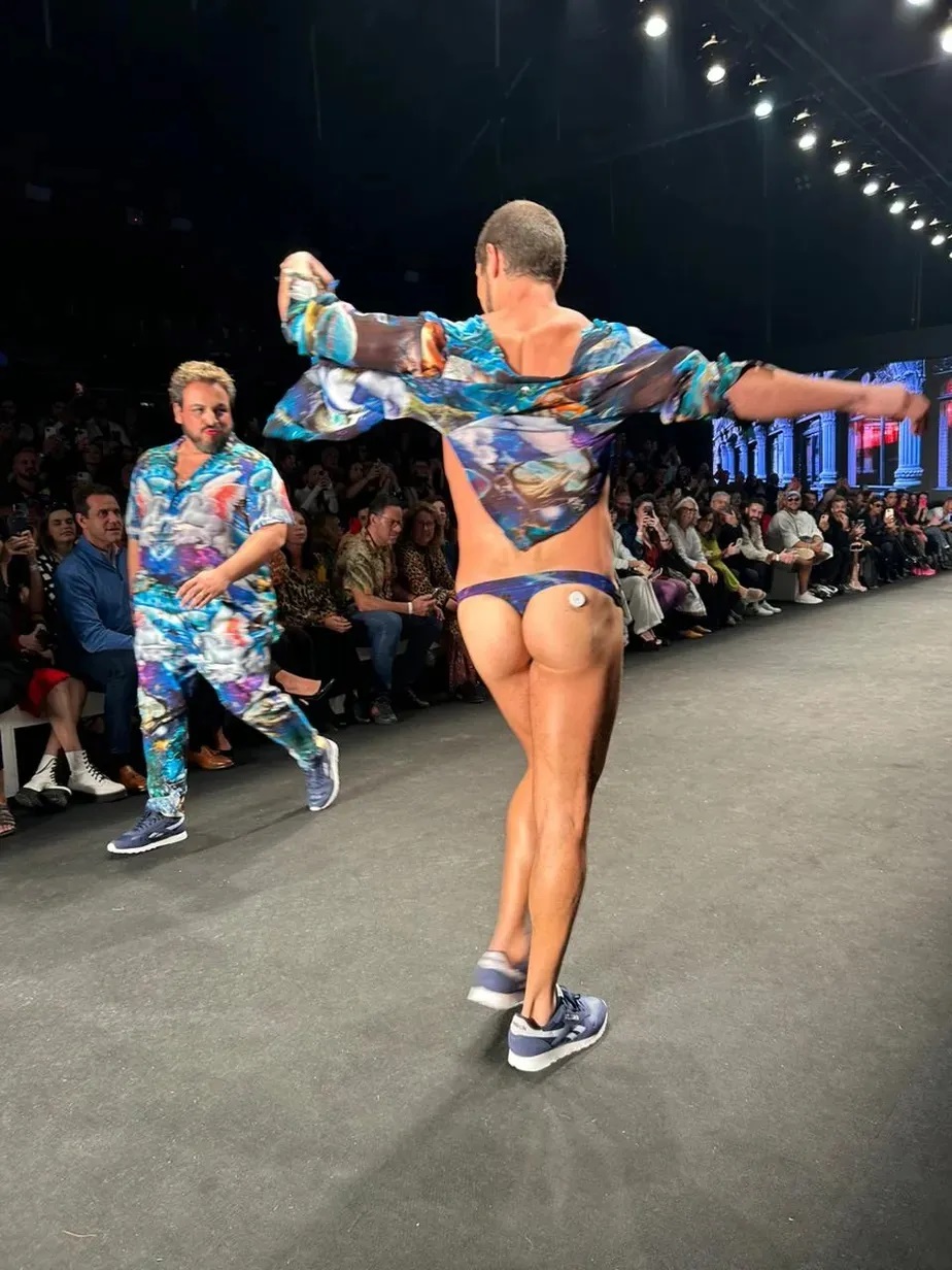 Luis Lobianco, que chegou a dar um "confere" em Loreto ao se cruzarem na passarela, também falou sobre a experiência de ser modelo por um dia.
