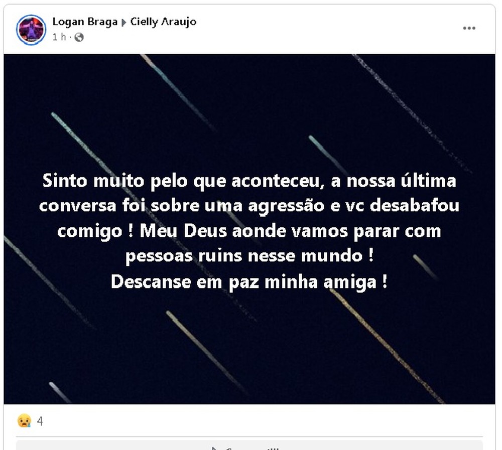 Amigo de Cielly faz postagem em rede social lembrando agressão que