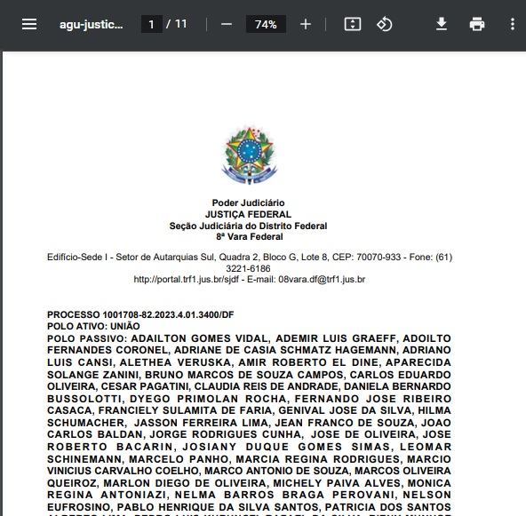 “A União requer o recebimento, autuação e distribuição da presente, bem como em sede de medida cautelar seja deferido liminarmente o bloqueio de bens dos requeridos, móveis e imóveis, de valor apto a assegurar o efetivo e devido ressarcimento ao erário federal pelos danos causados e aqui apontados, adotando-se as providências acima referidas para cumprimento dessa medida”, diz trecho da ação.