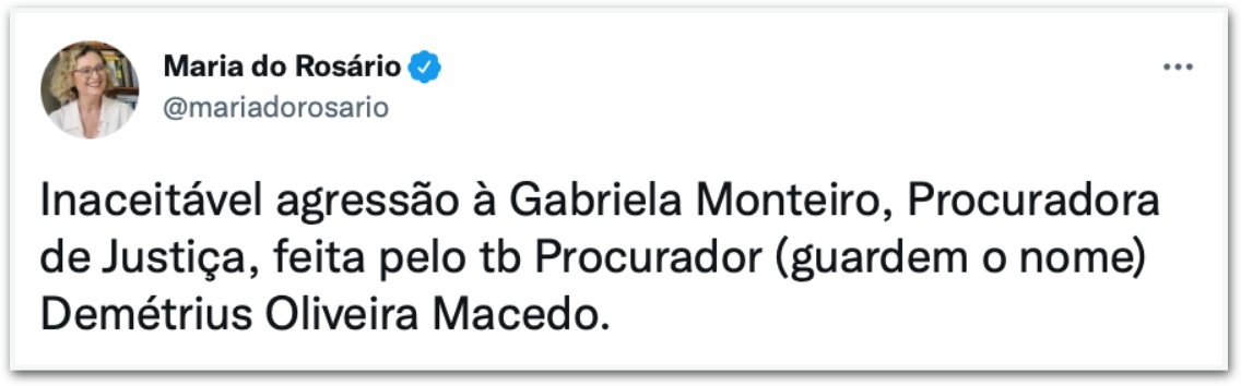 A procuradora também afirmou que se sentiu desrespeitada diante das agressões. “Foi exposta a minha dignidade. Como mulher, fui desrespeitada, assim como servidora pública. Enfim, foi um desrespeito global da minha personalidade como mulher”, desabafou.