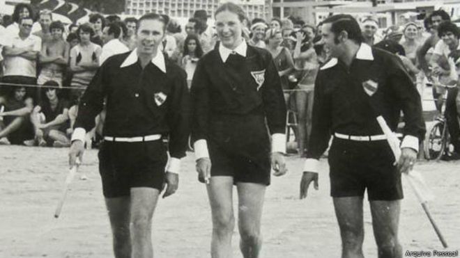 "Se eu tentasse jogar, seria quase impossível conseguir apoio para a causa, já que era contra a lei naquela época", relembra ela. "Mas ser árbitra era uma forma de entrar no jogo. Não havia nada específico na legislação contra isso. As mulheres foram proibidas de chutar a bola, mas a lei não mencionava soprar apitos."