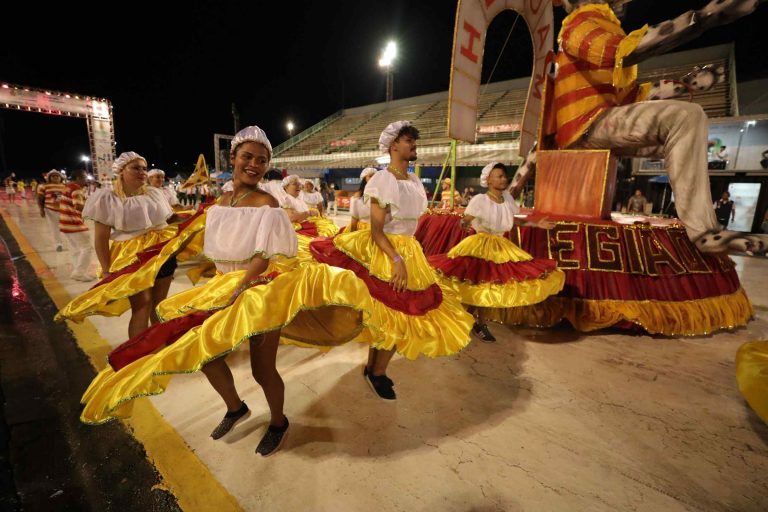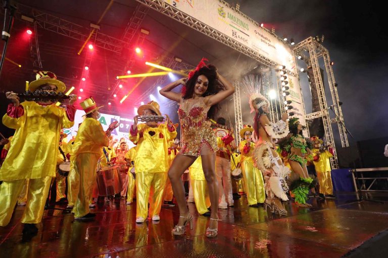 Nem mesmo a chuva conteve os artistas e foliões de Manaus, que compareceram, na noite de quinta-feira (17/03), à primeira noite do carnaval amazonense, com as apresentações das escolas de samba do Grupo de Acesso B. A Live do Carnaval 2022 ocorreu no Centro de Convenções Prof. Gilberto Mestrinho – Sambódromo de Manaus, na zona centro-oeste, e foi transmitida pelas redes sociais do Governo do Amazonas, da Secretaria de Estado de Cultura e Economia Criativa e TV Encontro das Águas (YouTube e Facebook).