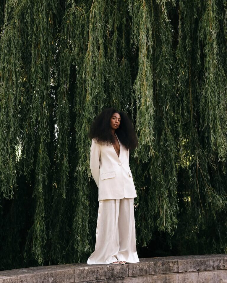 O conjunto de blazer e pantalona em tecidos leves mostra como a alfaiataria pode funcionar nas noites quentes do hemisfério sul. A paleta off-white reforça a estética clean, enquanto as proporções largas deixam tudo mais moderno. Escolha certeira para looks de ano novo em ambientes urbanos ou celebrações ao ar livre.