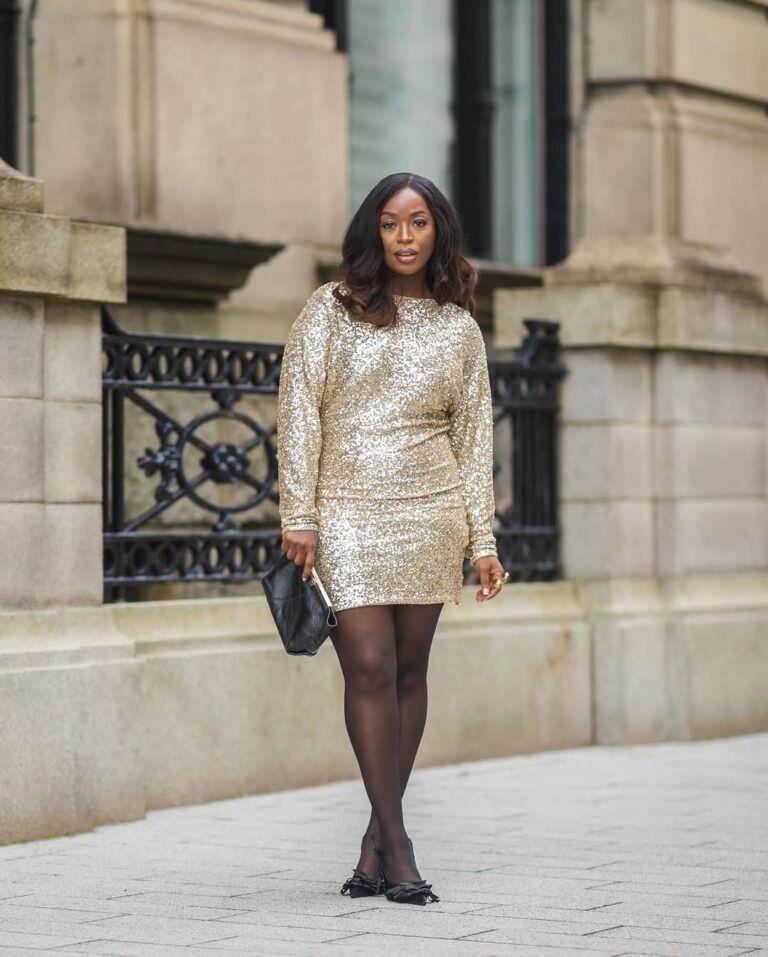 Mesmo fugindo do branco, os metalizados nunca perdem espaço na contagem regressiva. A textura brilhante, em vestidos curtos ou longos, conversa com a festa e ilumina a paleta clássica da temporada. Para quem quer fugir do óbvio sem abandonar a atmosfera celebrativa, a proposta funciona como complemento ou alternativa nos looks de ano novo, mantendo o clima de celebração que a data pede.