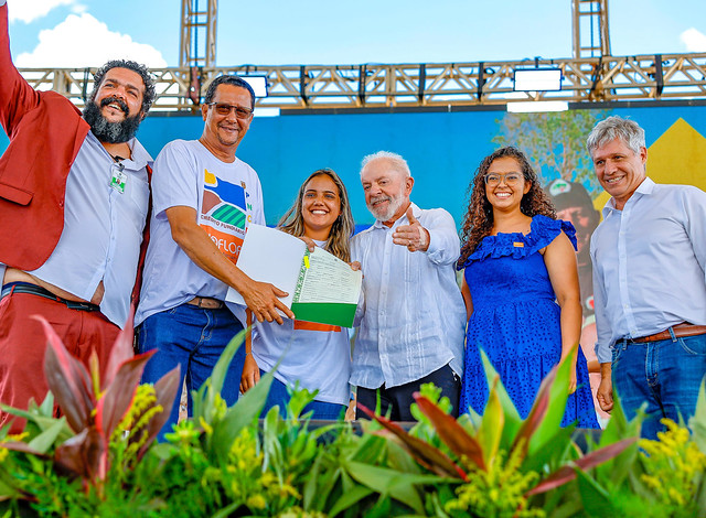 O presidente Luiz Inácio Lula da Silva participou nesta sexta-feira, 7 de março, da entrega de 12.297 lotes para famílias acampadas em 138 assentamentos rurais. No total, são 385 mil hectares espalhados em 24 estados. Durante a cerimônia, em Campo do Meio (MG), Lula assinou sete decretos de interesse social para fins de reforma agrária, somando 13.307 hectares e R$ 189 milhões em investimentos.