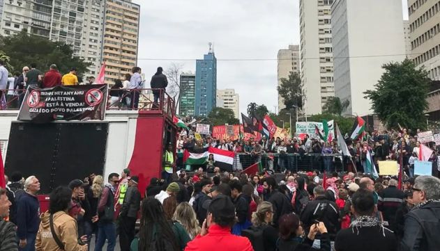 Manifestantes fazem ato pró-Gaza em São Paulo