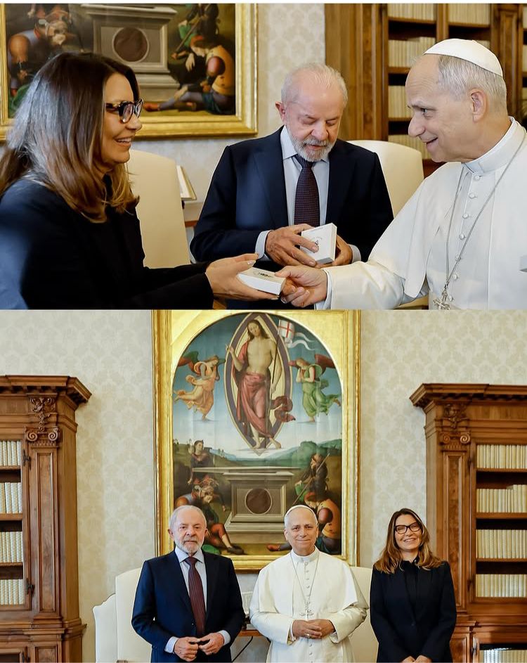 O presidente Luiz Inácio Lula da Silva se reuniu nesta segunda-feira, 13/10, com o Papa Leão XIV, na Biblioteca do Palácio Apostólico, no Vaticano. Acompanhado da primeira-dama Janja Lula da Silva e de membros do governo, Lula discutiu com o pontífice temas como fé, desigualdade social, combate à fome e a realização da COP30 no Brasil.