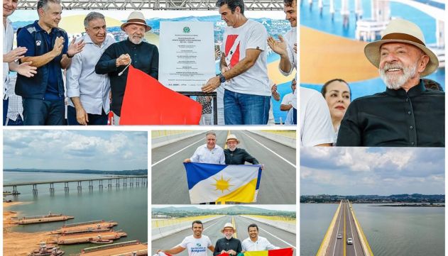 O presidente Luiz Inácio Lula da Silva inaugura nesta terça-feira, 18/11, a ponte sobre o Rio Araguaia, que vai conectar as cidades de Xambioá (TO) e São Geraldo do Araguaia (PA), na BR-153. A cerimônia ocorre no final desta manhã na orla de Xambioá. A obra conta com 2.010 metros de extensão, sendo 310 metros no Pará e 1.700 metros no Tocantins.