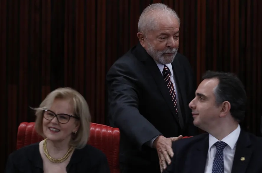 Cerimônia teve início com a chegada do presidente no Rolls Royce presidencial, acompanhado da primeira-dama, Rosângela Silva, a Janja, que vestiu vermelho e fez o sinal do "L"