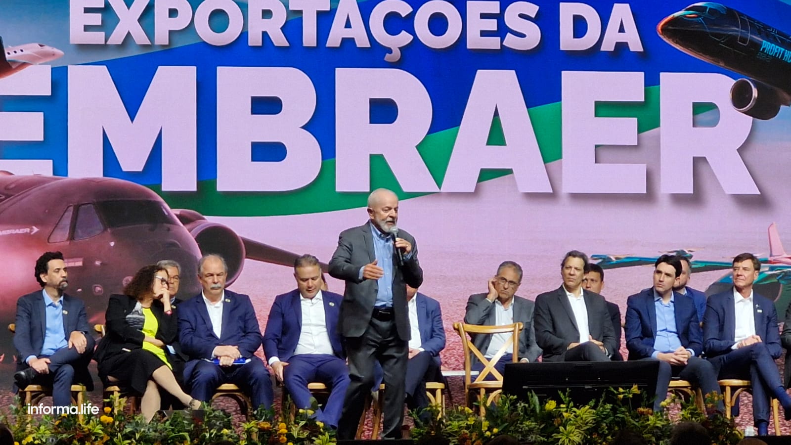 “Eu vim aqui porque essas coisas não acontecem de graça. Não é sempre que o BNDES financia a exportação brasileira. Não é sempre que o BNDES tem coragem de emprestar R$ 4,5 bilhões para financiar avião para uma empresa americana. Isso é decisão política. E a decisão política é tomada pelo governo”, frisou o presidente durante a solenidade.
